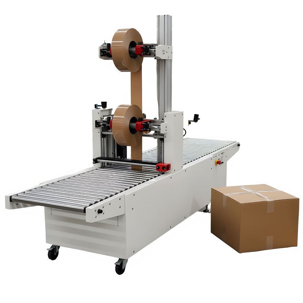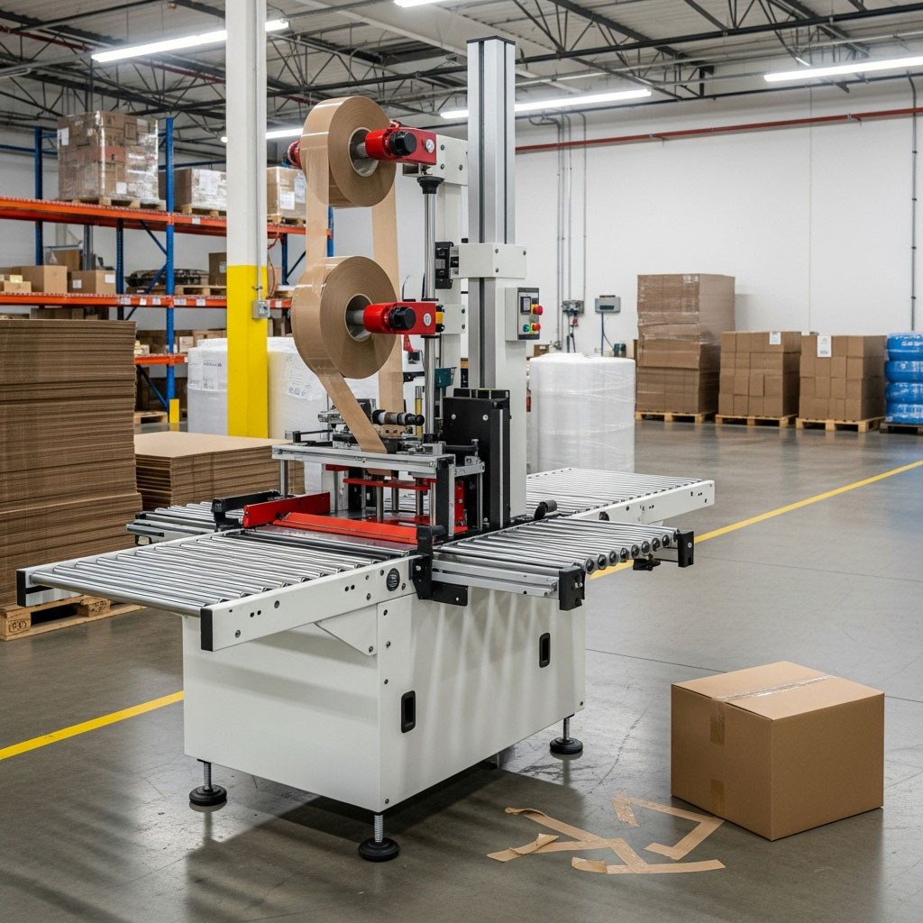 Streamlines the end-of-line packaging process by automating carton sealing and strapping, improving efficiency, and reducing manual labor. This machine is essential for manufacturers with high-volume production who need secure packaging for shipping.